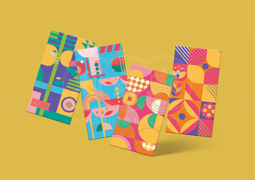 利是封設計採用鮮明顏色為主,透過幾何圖案形式表達新春祝福,極具時尚感及充滿活力氣息!